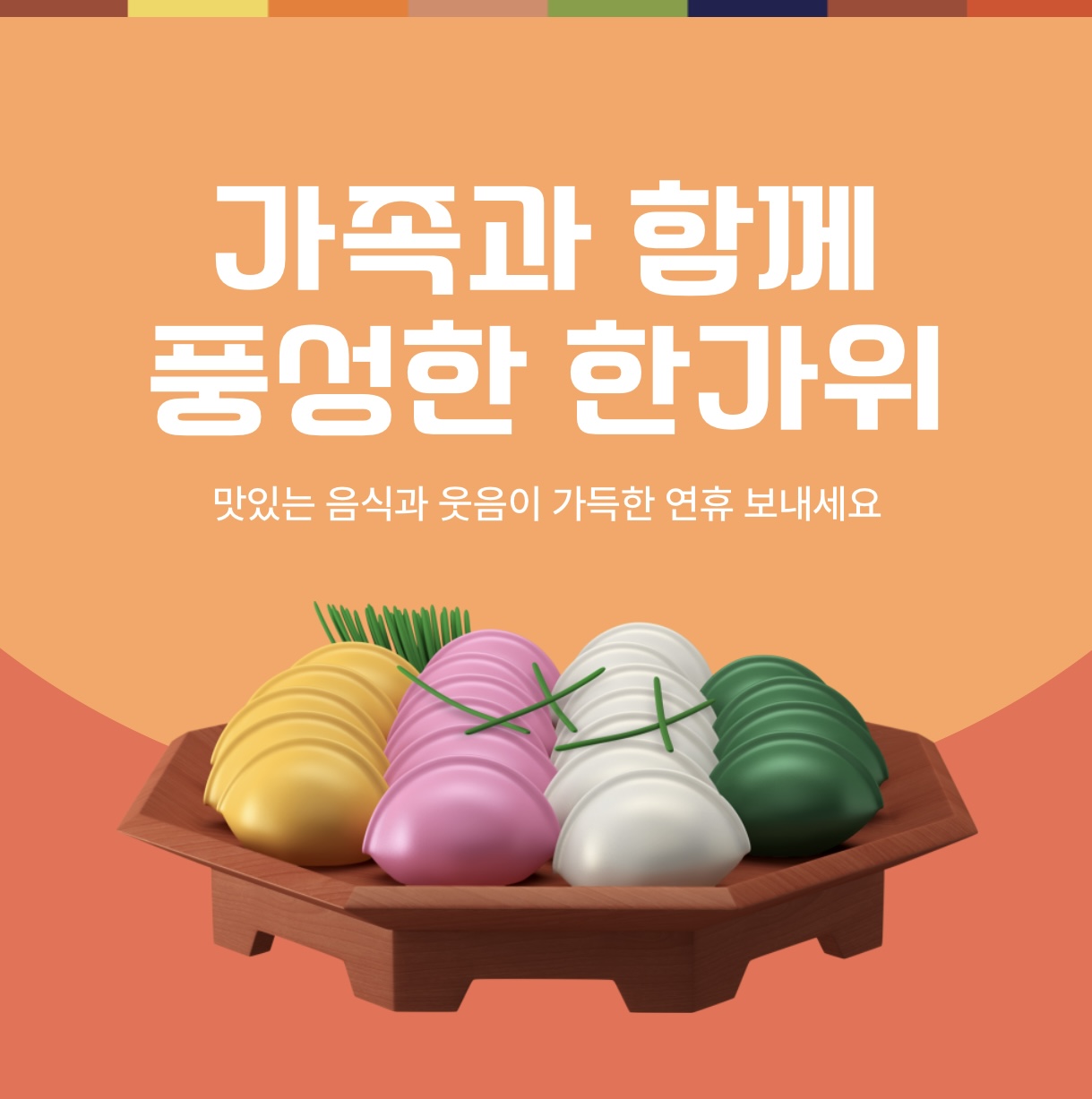 가족과 함께 풍성한 한가위 되세요 맛있는 음식과 웃음이 가득한 연휴 보내세요.